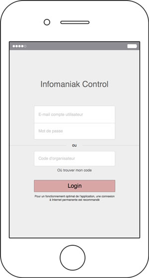 Deux choix sont donnés aux organisateurs pour s’identifier sur l’application: soit en utilisant les identifiants de la console d’administration d'etickets, soit en utilisant un code organisateurs qui leur permet de transmettre ce code aux personnes qui s’occuperont, par exemple, du contrôle des personnes à l’entrée de l’événement.